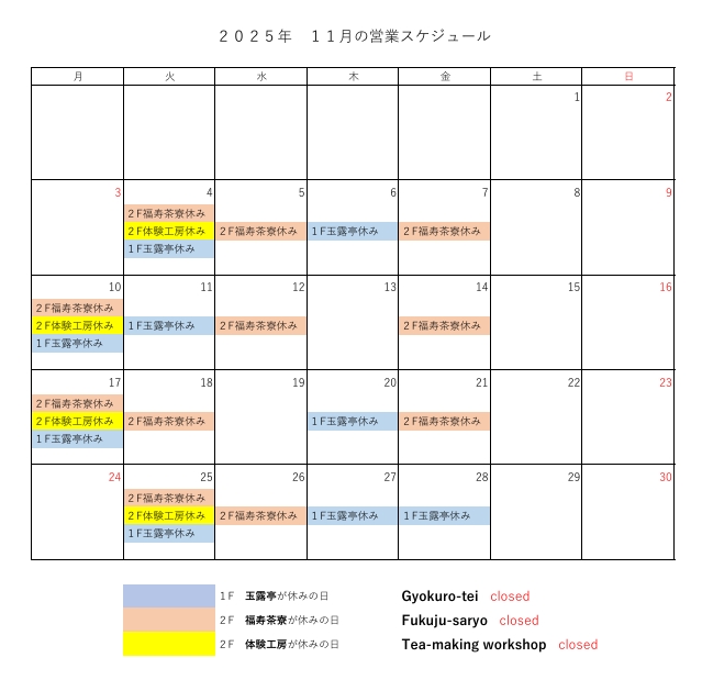 ※「福寿茶寮」が営業の場合は12:00オープンの場合もあります。