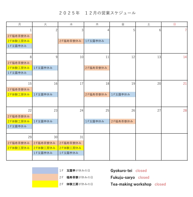 ※「福寿茶寮」が営業の場合は12:00オープンの場合もあります。