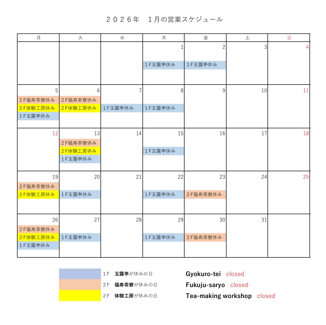 ※「福寿茶寮」が営業の場合は11:30オープンの場合もあります。