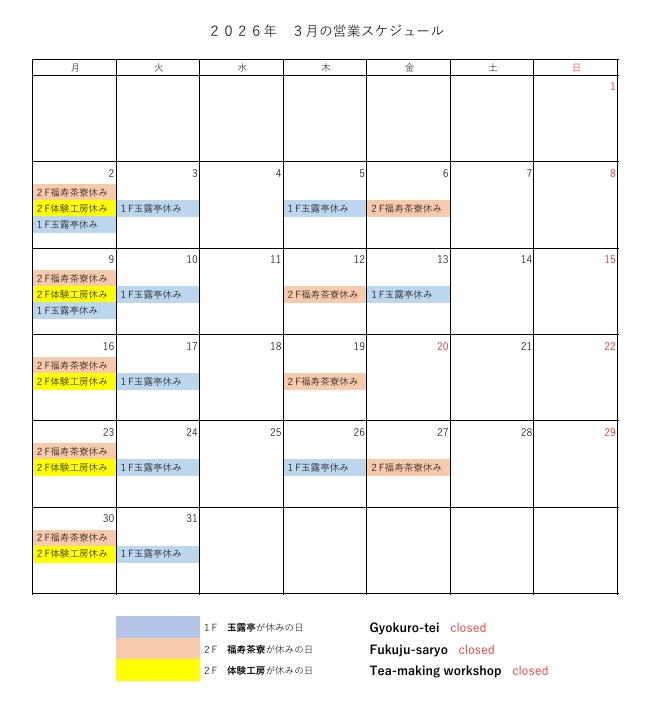 ※「福寿茶寮」が営業の場合は11:30オープンの場合もあります。
